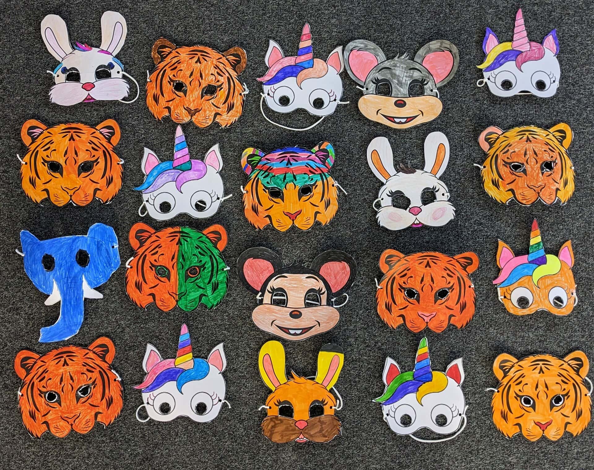 Schon seit Wochen wurde in der Deutschklasse 1/2 eifrig gemalt, gebastelt und getanzt. Alles stand unter dem Motto „Wir feiern Fasching!“ So entstanden viele lustige, bunte Clowns, die man in der Aula bewundern kann. Außerdem wurden Einhörner, Löwen, Tiger, Mäuse und Elefanten in Form von Faschingsmasken gestaltet.